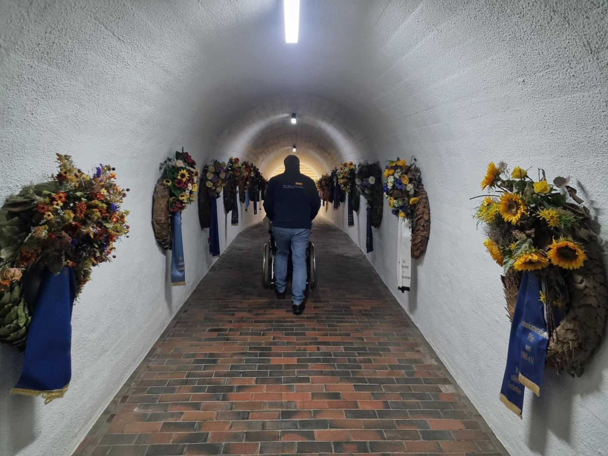 Geplant war ein Rundgang durch das U-Boot, den Turm, die Museumshalle und die Gedenkhalle. Leider war der Fahrstuhl zur unterirdischen Gedenkhalle aufgrund von Personalmangel außer Betrieb. Doch wie durch ein kleines Wunder war zufällig ein dienstfreier Mitarbeiter vor Ort, der sich spontan bereit erklärte, den Fahrstuhl in Betrieb zu nehmen und uns zudem eine Führung durch alle Bereiche zu geben.
